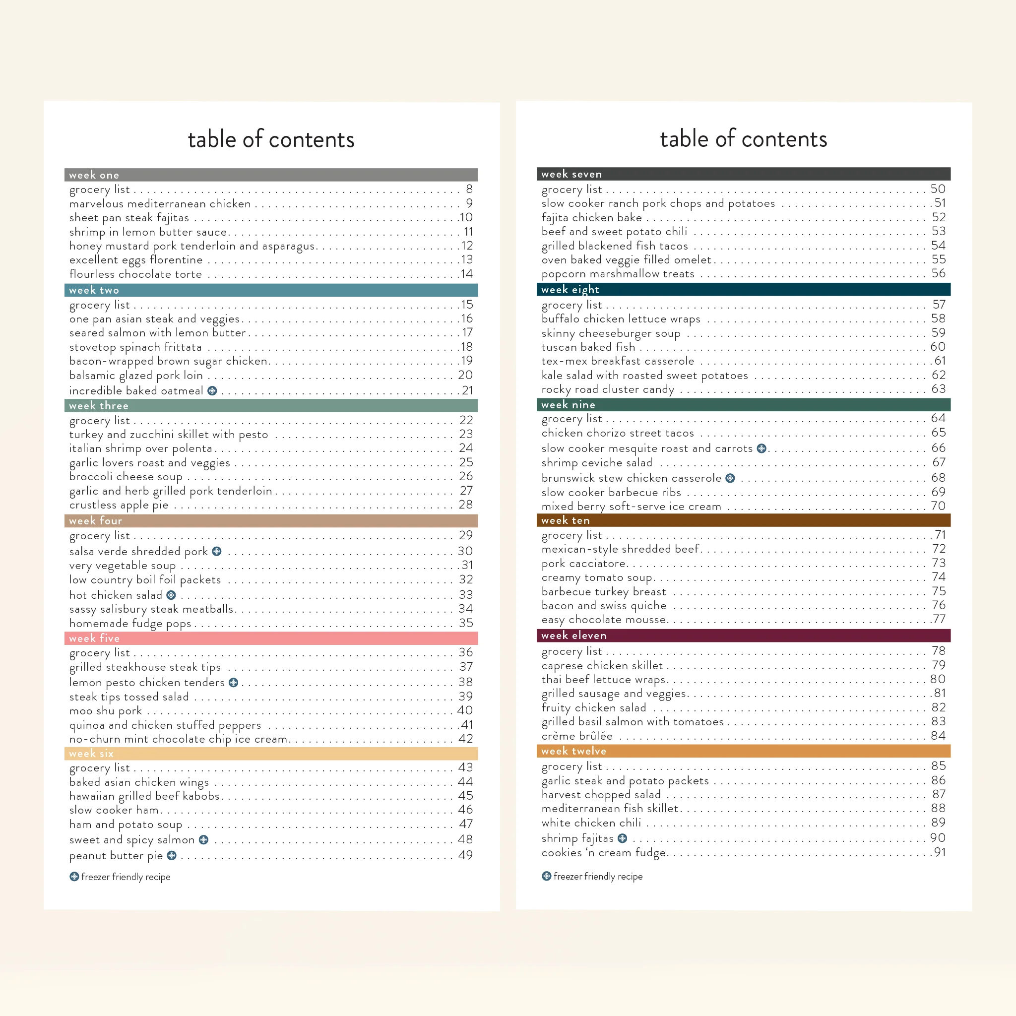 Each week has five amazing recipes plus a dessert. Your crew will love the steak tips tossed salad, fajita chicken bake, beef & sweet potato chili, bacon-wrapped brown sugar chicken, italian shrimp over polenta, and hot chicken salad. The dessert section is not to be overlooked either, with delicious treats that will satisfy your sweet tooth while keeping it gluten-free.