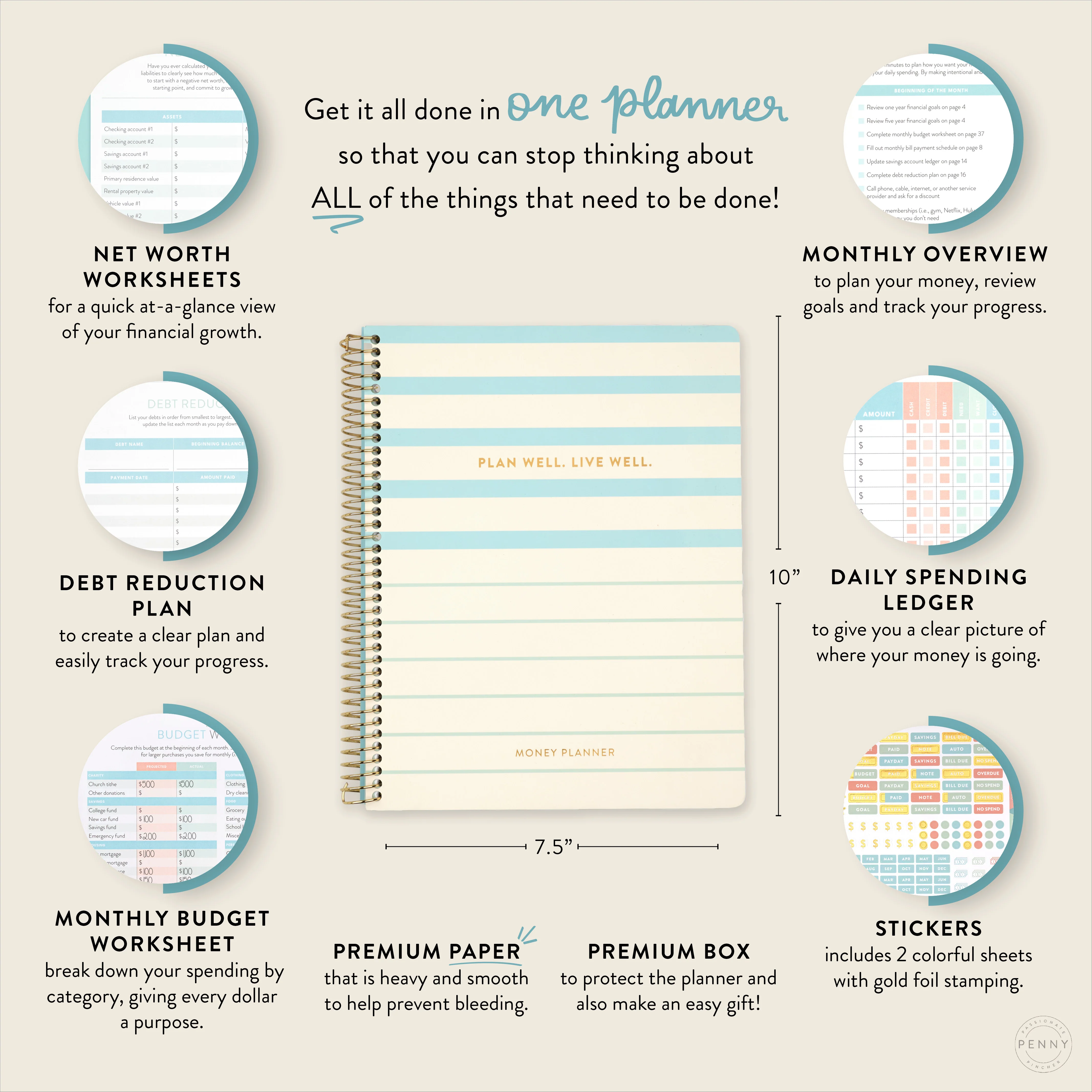 The Money Planner gives you EASY, ACTIONABLE STEPS so that you know exactly what to do each day and can live a life with less stress, financial freedom, and clarity regarding your expenses.