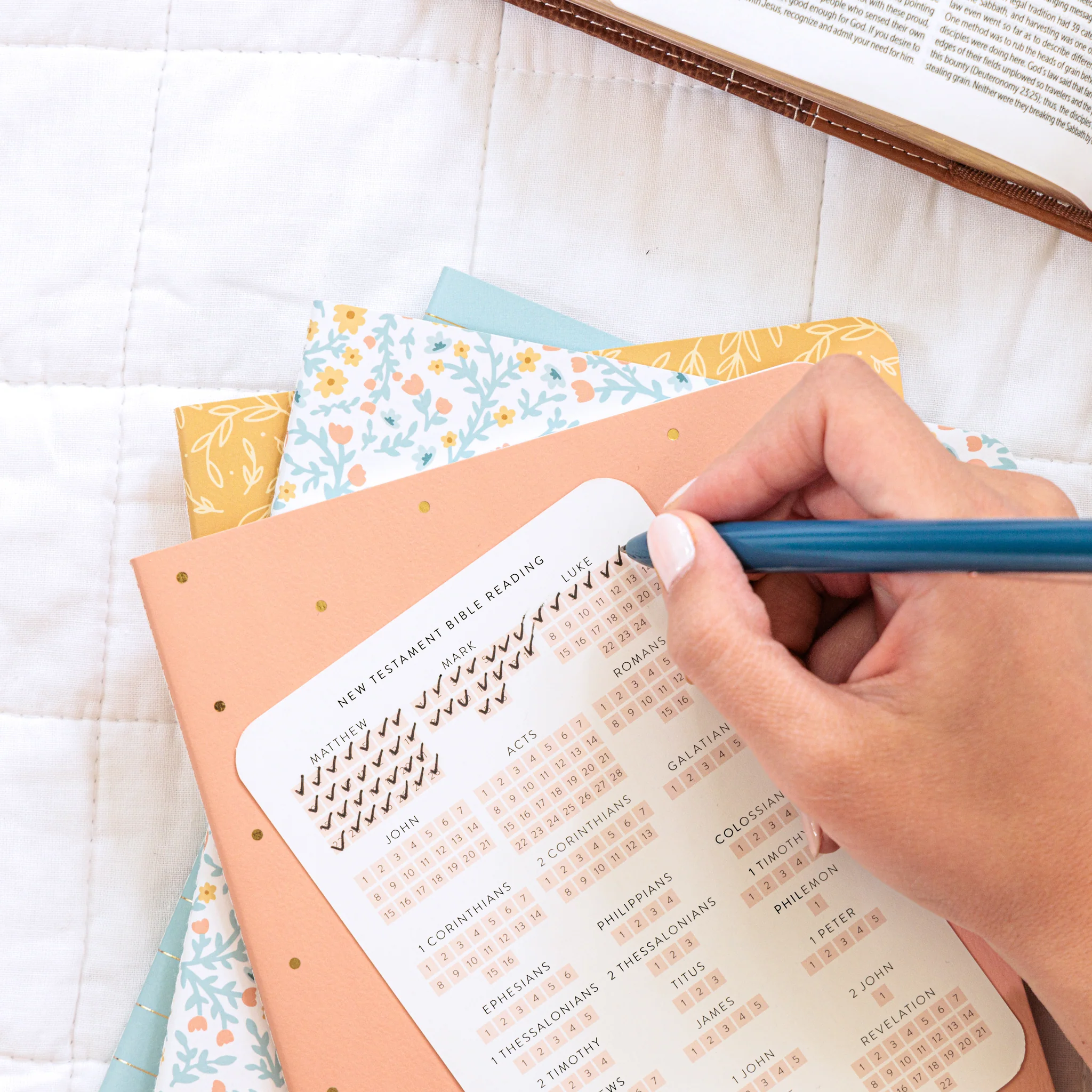 Improve your spiritual journey by using these practical New Testament Bible journals designed for easy reading and reflection. These journals come with a comprehensive Bible reading plan and daily prompts to help you engage with the New Testament. Deepen your faith as you meditate on scripture and document your thoughts during your daily devotional time.